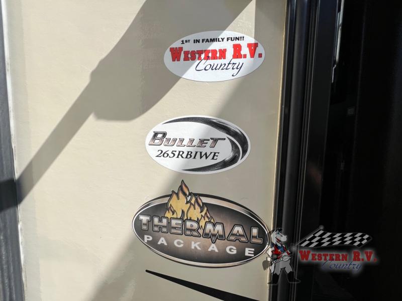 The Bullet 265RBIWE features two slide-outs, providing extra living space and a roomy interior that can comfortably sleep up to five people. The intelligently designed floor plan includes a cozy master bedroom with a queen-sized bed, a convertible dinette, and a sofa bed, ensuring everyone has a comfortable place to rest. The fully equipped kitchen boasts modern appliances, including a refrigerator, microwave, and stove, allowing you to prepare meals with ease. The bathroom is complete with a shower, sink, and toilet, offering all the conveniences of home.