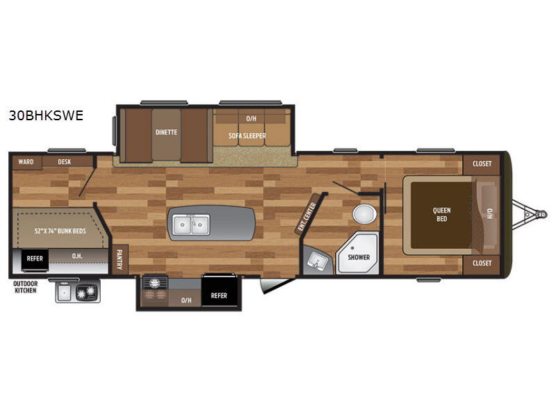 Discover the perfect getaway companion with our 2017 Keystone RV Hideout 30BHKSWE Travel Trailer! This spacious and well-maintained RV is designed to make your adventures comfortable and memorable. With a length of 28 feet and a weight of just 3,373 kilograms, it's easy to tow and maneuver, making it ideal for both seasoned travelers and RV newcomers alike.