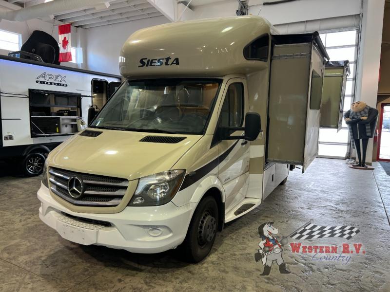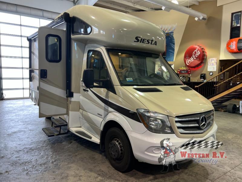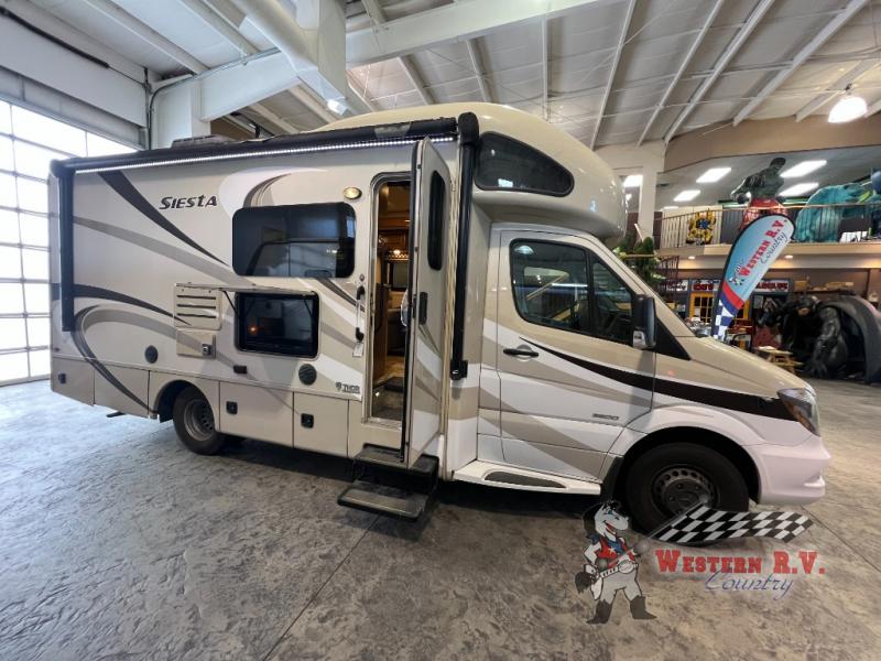 Introducing the 2017 Thor Motor Coach Siesta Sprinter 24SS, a premier Class C motorhome designed to elevate your travel experience. This meticulously crafted RV offers a harmonious blend of comfort, functionality, and style, making it an ideal choice for families and adventurers alike. With its sleek design and robust features, the Siesta Sprinter promises a journey of unparalleled convenience and luxury.