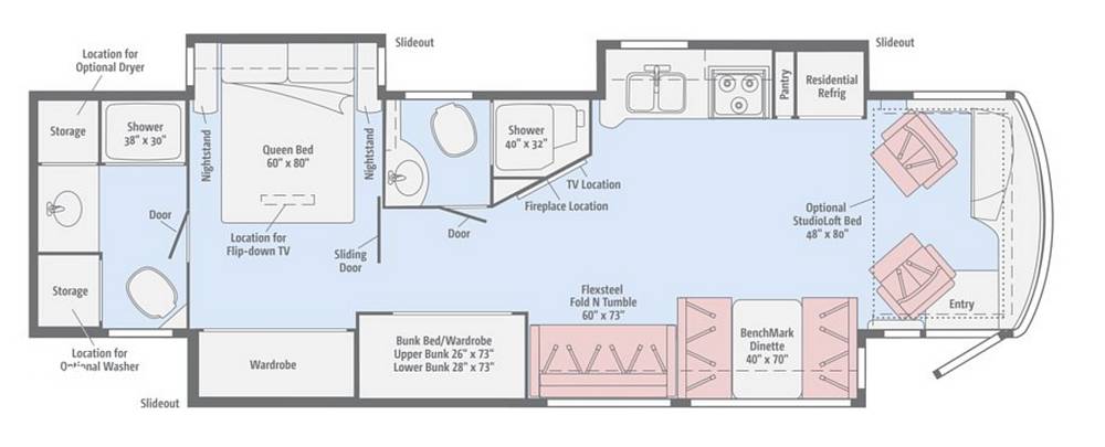 Measuring an impressive 33 feet in length, this RV provides ample space for relaxation and entertainment. Inside, you'll find a well-appointed interior featuring high-quality furnishings and modern amenities. The layout includes a fully equipped kitchen, a cozy living area, and multiple sleeping options, ensuring everyone has their own space to unwind. The thoughtful design maximizes every inch of space, providing plenty of storage for all your travel essentials.