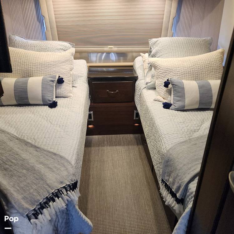 Inside, the Airstream Classic 30RB is thoughtfully designed to accommodate up to four people comfortably. The twin bed configuration ensures a restful night's sleep, while the high-quality materials and finishes throughout the interior create an inviting and sophisticated atmosphere. The well-appointed kitchen features modern appliances and ample storage, allowing you to prepare meals with ease. The living area, with its plush seating and entertainment options, provides a perfect space for relaxation after a day of exploration.