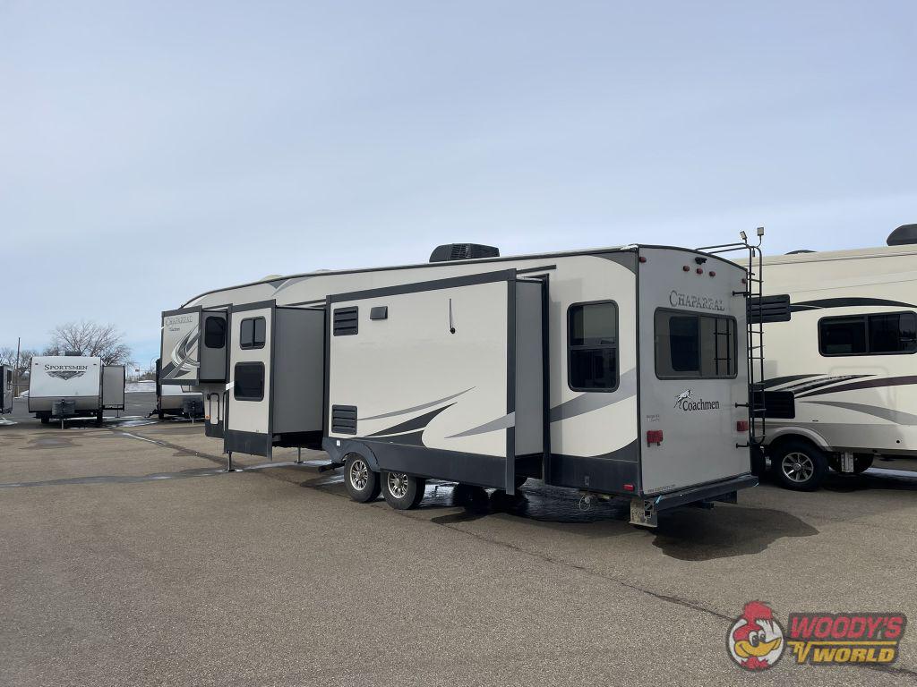 Built with durability in mind, the Chaparral 360IBL features a robust construction with high-quality materials, ensuring longevity and peace of mind. The exterior is designed for convenience, with multiple storage compartments and an easy-to-use leveling system. With a dry weight of approximately 5,897 kilograms and a payload capacity of 1,497 kilograms, this fifth wheel is engineered to handle your travel needs with ease. Whether you're embarking on a weekend getaway or a cross-country adventure, the 2018 Coachmen Chaparral 360IBL Fifth Wheel promises a journey of comfort and style. Don't miss the opportunity to own this exceptional RV, where every detail is crafted to enhance your travel experience.
