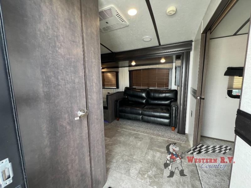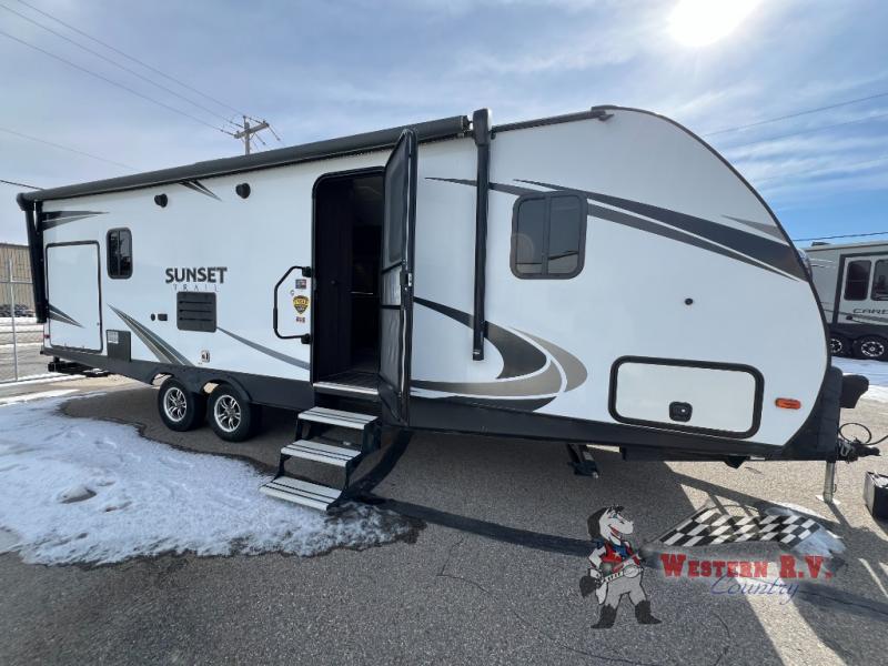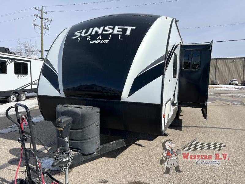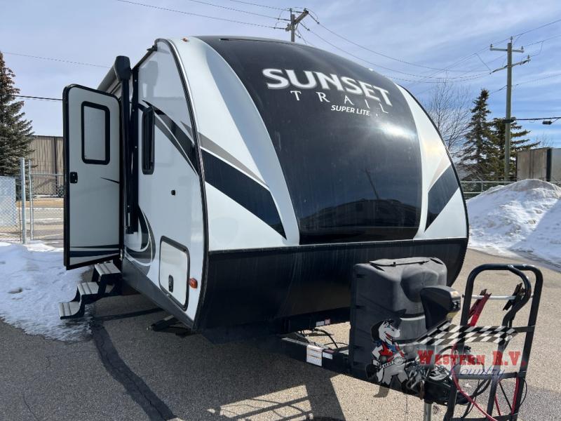 The Sunset Trail Super Lite features a single slide-out, enhancing the living area to provide a spacious and inviting environment. Inside, you'll find accommodations to comfortably sleep up to five people, ensuring everyone has a cozy place to rest after a day of exploration. The intelligently designed floor plan includes a well-equipped kitchen, a comfortable dining area, and a luxurious bathroom, all crafted with high-quality materials and finishes. The attention to detail in the design ensures a seamless blend of functionality and style.