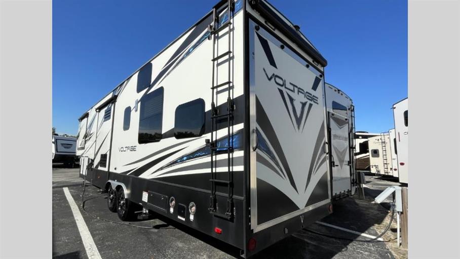 Discover the ultimate adventure companion with the 2018 Dutchmen Voltage 3605 Fifth Wheel, a luxurious and spacious RV designed to elevate your travel experiences. This exceptional vehicle boasts three slide-outs, expanding your living space to provide unparalleled comfort and convenience. Whether you're embarking on a weekend getaway or an extended road trip, this RV is equipped to accommodate up to eight people, making it perfect for families or groups of friends seeking unforgettable journeys.