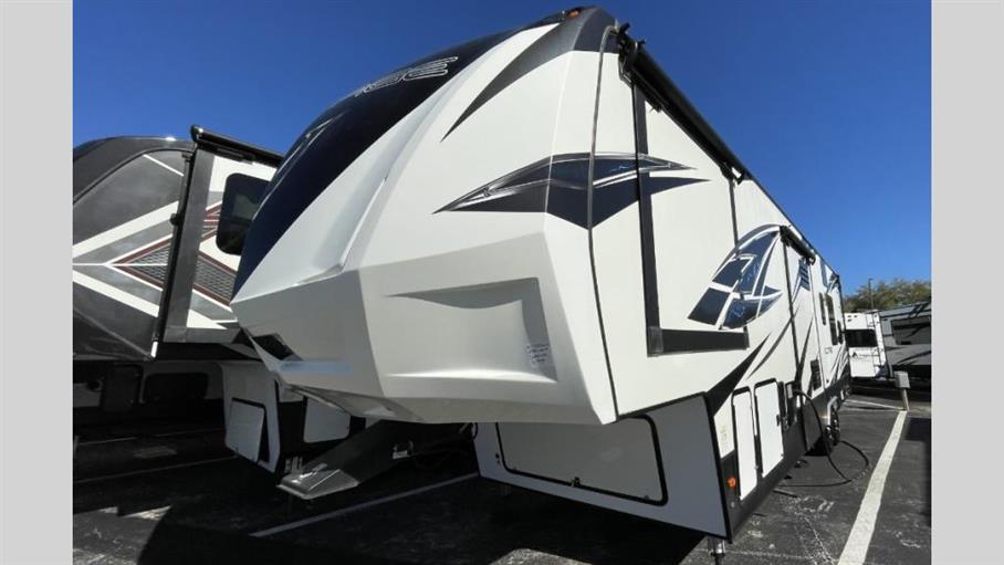 Weighing in at approximately 6,158 kilograms, the Dutchmen Voltage 3605 is engineered for stability and ease of towing, ensuring a smooth ride wherever your travels take you. The thoughtfully designed interior features a modern kitchen with top-of-the-line appliances, a cozy living area with plush seating, and a master bedroom that promises restful nights. The additional sleeping areas, including convertible sofas and bunk beds, ensure everyone has their own space to relax and recharge.