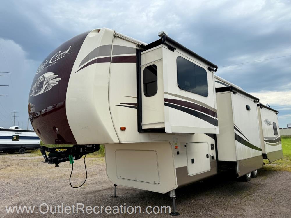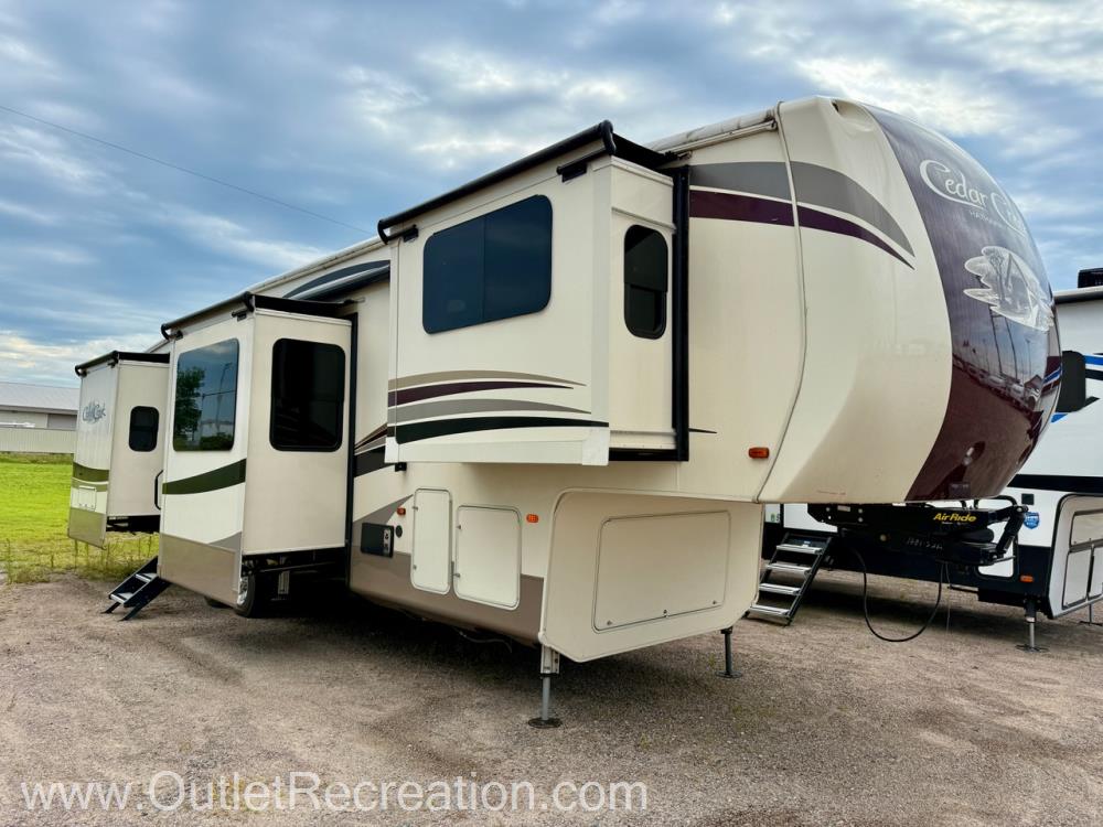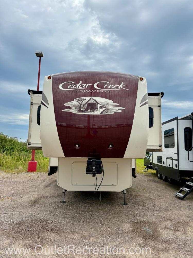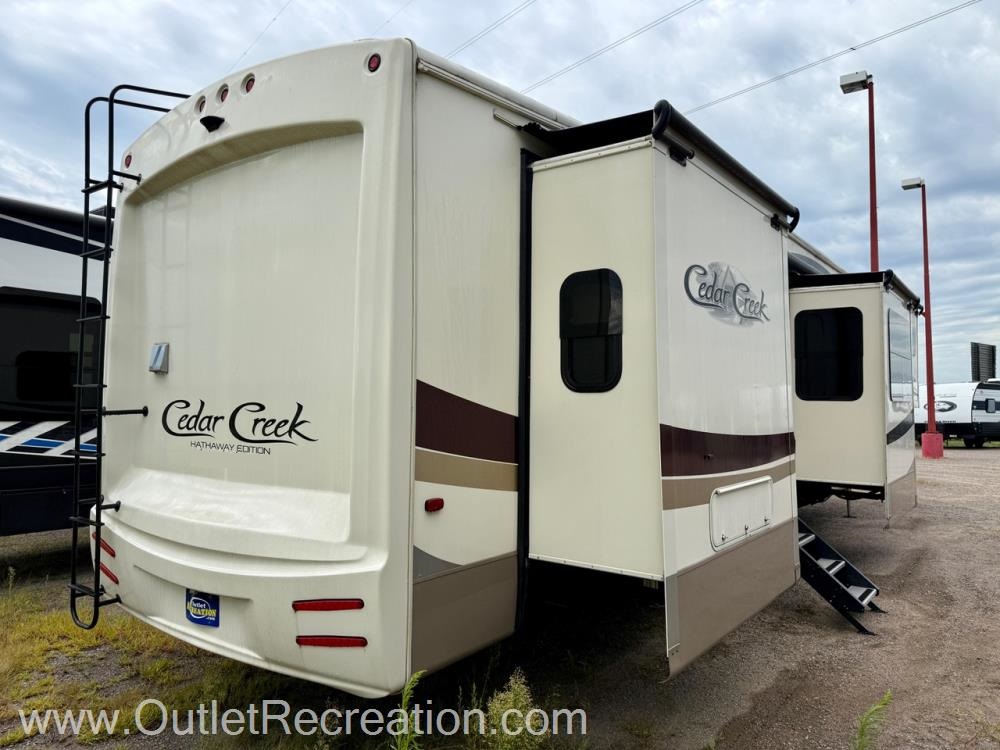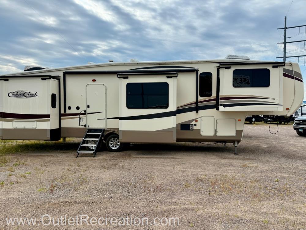 Discover the ultimate in luxury and comfort with the 2018 Forest River Cedar Creek 38FLX Fifth Wheel, a masterpiece of design and functionality. This exceptional RV is perfect for those who crave adventure without compromising on the comforts of home. With a length of 41 feet, this spacious fifth wheel offers ample room for family and friends, making it the ideal choice for extended road trips or weekend getaways.