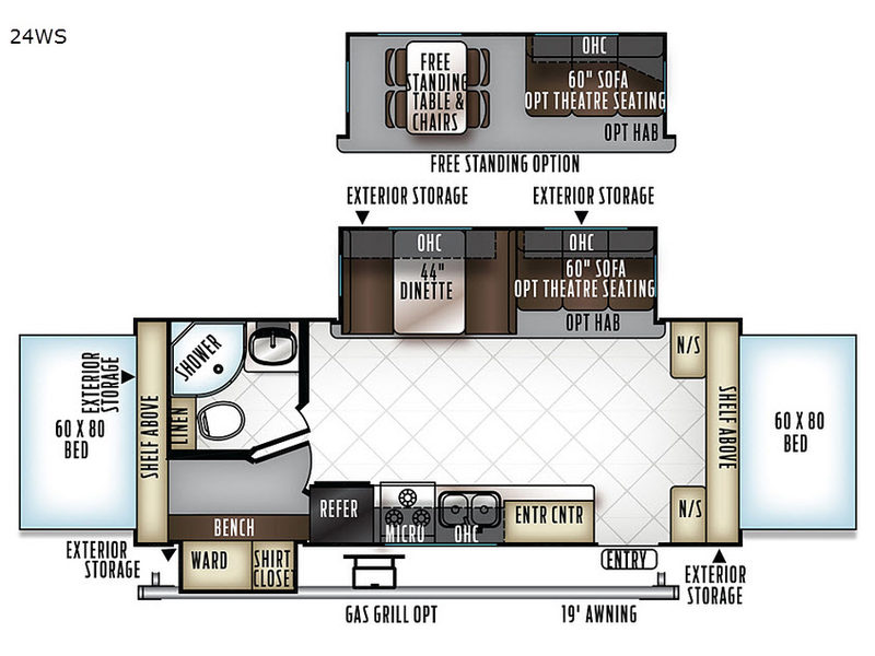 Discover the perfect blend of comfort and adventure with the 2018 Forest River RV Rockwood Roo 24WS Hybrid. This versatile RV is designed for families and travel enthusiasts who crave the open road without sacrificing the comforts of home. With its innovative hybrid design, this RV offers the best of both worlds: the spaciousness of a traditional RV and the compact convenience of a trailer. Measuring approximately 21 feet in length, the Rockwood Roo is easy to tow and maneuver, making it ideal for both seasoned travelers and RV newcomers.