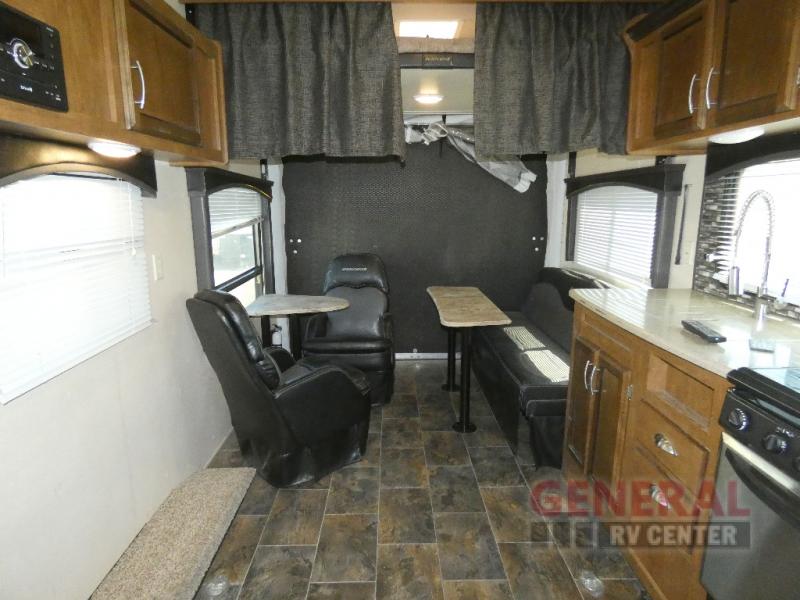 Inside, you'll find a well-appointed living space that includes all the essential amenities for a comfortable stay. The thoughtful layout maximizes space and functionality, featuring a fully equipped kitchen, a spacious dining area, and ample storage options. Whether you're planning a weekend getaway or an extended road trip, the 2018 Forest River RV Shockwave 24RQMX Toy Hauler is your reliable companion, offering the perfect balance of luxury and practicality for all your travel needs.