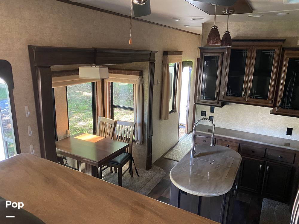 Inside, the Sierra 379FLOK comfortably sleeps up to six people, making it ideal for family adventures or trips with friends. The spacious interior features a well-appointed living area with plush seating, a cozy fireplace, and a large flat-screen TV, perfect for relaxing after a day of exploration. The kitchen is equipped with modern appliances, including a full-sized refrigerator, microwave, and oven, allowing you to prepare meals with ease. The dining area provides a comfortable space for enjoying meals together.