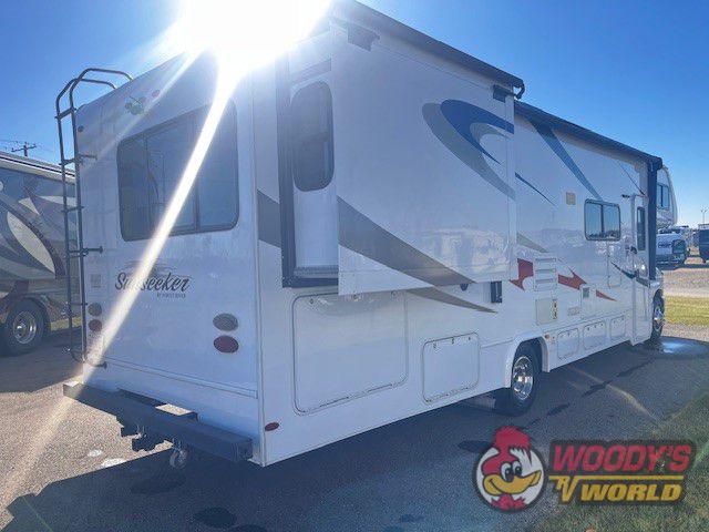 Step inside to find a welcoming interior that feels like a home away from home. The spacious living area features a cozy dinette and a comfortable sofa, perfect for relaxing after a day of exploration. The fully-equipped kitchen comes with a refrigerator, microwave, and stove, making meal preparation a breeze. With plenty of storage throughout, you can bring along all your essentials without feeling cramped. The Sunseeker also boasts a private bedroom with a queen-sized bed, ensuring restful nights wherever the road takes you.
