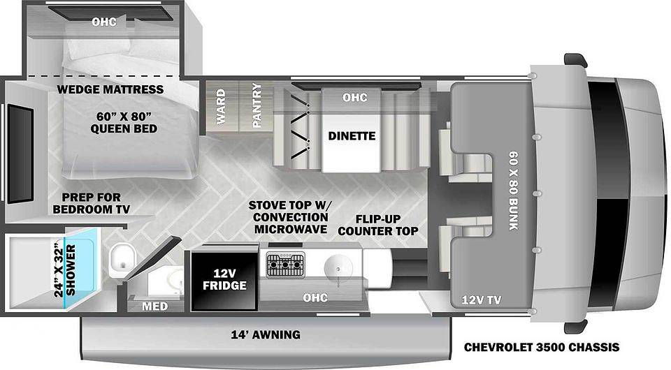 Step inside to discover a thoughtfully designed living space that maximizes every square meter. The Sunseeker LE 2250 features a fully equipped kitchen with a refrigerator, microwave, and stove, ensuring you can prepare meals with ease. The cozy dinette area provides a comfortable space for dining or relaxing, while the overhead cab bunk and convertible sofa offer additional sleeping options. The master bedroom, complete with a plush double bed, ensures restful nights after a day of exploration. The RV also includes a well-appointed bathroom with a shower, sink, and toilet, providing all the comforts of home on the road.