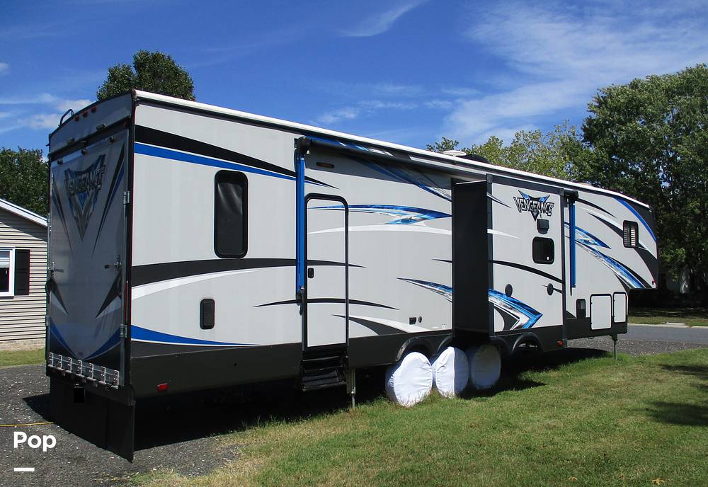 But it's not just about the inside—this RV is built for adventure. Its robust design and reliable performance mean you can take it just about anywhere. Whether you're navigating mountain roads or cruising along the coast, the Vengeance 377 V handles like a dream. So pack your bags, gather your favorite people, and hit the road in style with this fantastic fifth wheel. Adventure awaits, and this RV is ready to take you there!