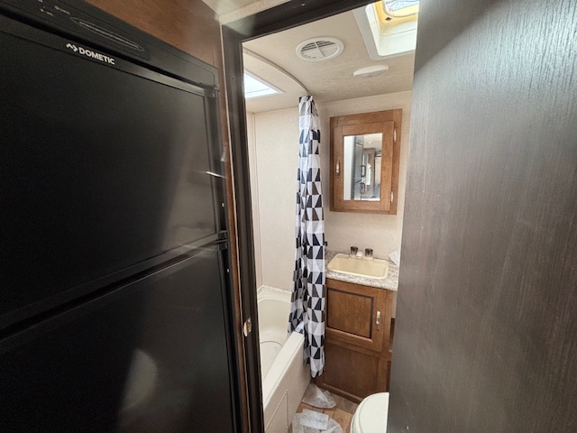 Weighing approximately 1,922 kilograms, the Wildwood 201BHXL is built for efficiency without compromising on comfort. Inside, you'll find a thoughtfully designed layout that maximizes space and functionality. The sleeping arrangements include a cozy queen bed, a convertible dinette, and bunk beds, providing ample sleeping options for everyone. The kitchen is equipped with modern appliances, including a refrigerator, microwave, and a two-burner stove, allowing you to prepare meals with ease.