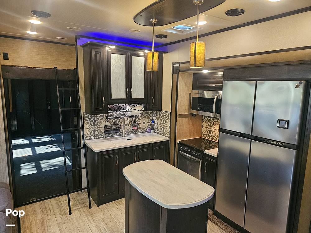 Step inside and be greeted by a thoughtfully designed interior that combines comfort and functionality. The Momentum 398M boasts a well-appointed kitchen equipped with modern appliances, allowing you to prepare delicious meals on the go. The living area is perfect for relaxation, featuring plush seating and entertainment options to keep everyone entertained. With multiple sleeping areas, including a master suite and convertible spaces, this RV ensures privacy and comfort for all occupants.