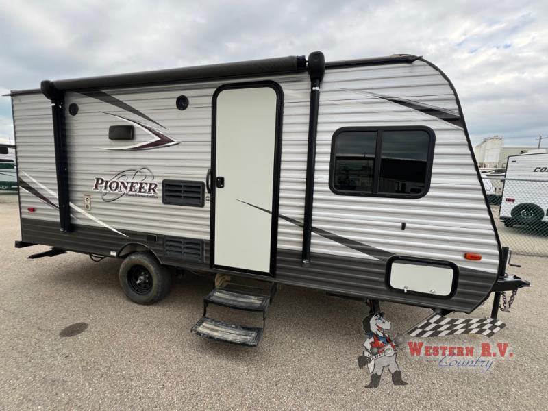 The 2018 Heartland Pioneer 175BH is built to deliver a seamless camping experience with its durable construction and user-friendly features. Whether you're embarking on a weekend getaway or an extended road trip, this travel trailer is equipped to meet your needs. Experience the freedom of the open road and the comfort of home with the Heartland Pioneer 175BH, your trusted companion for memorable journeys.