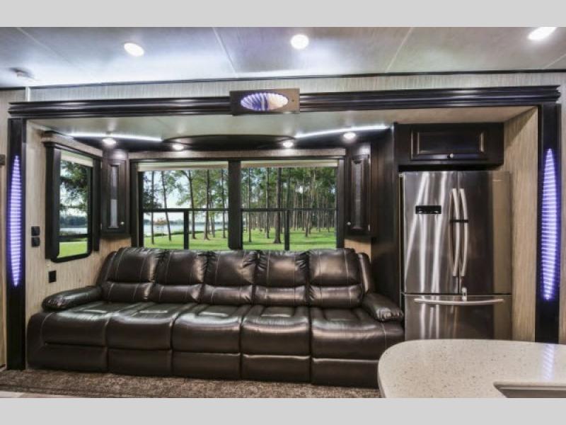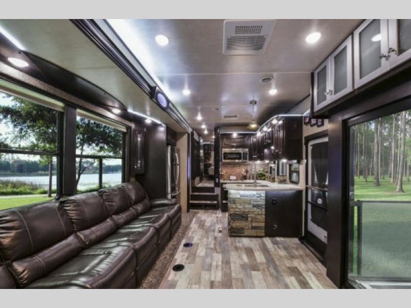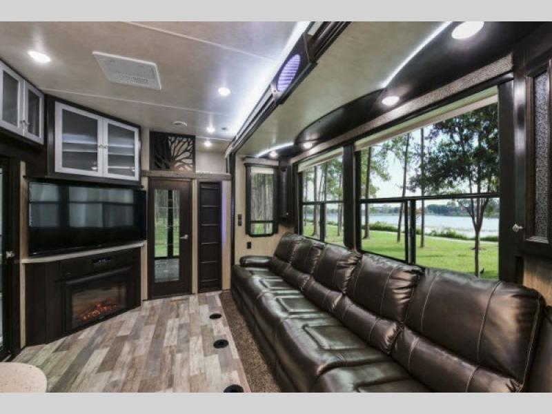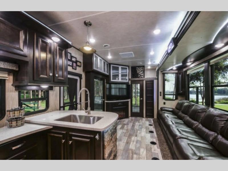 The Road Warrior 427 features two slide-outs that significantly enhance the living space, creating a roomy and inviting atmosphere. It can comfortably sleep up to eight people, making it perfect for family trips or group outings. The interior is thoughtfully designed with high-quality materials and finishes, ensuring a cozy and stylish environment. The well-equipped kitchen, spacious living area, and modern bathroom facilities provide all the conveniences of home, while the master bedroom offers a private retreat for relaxation.