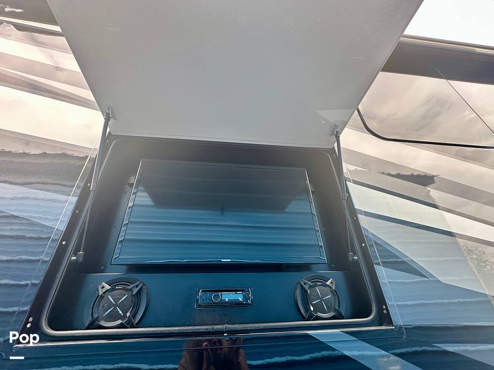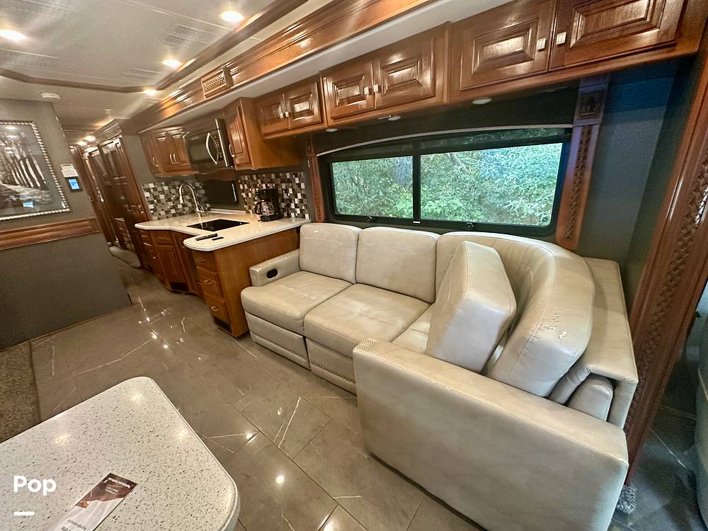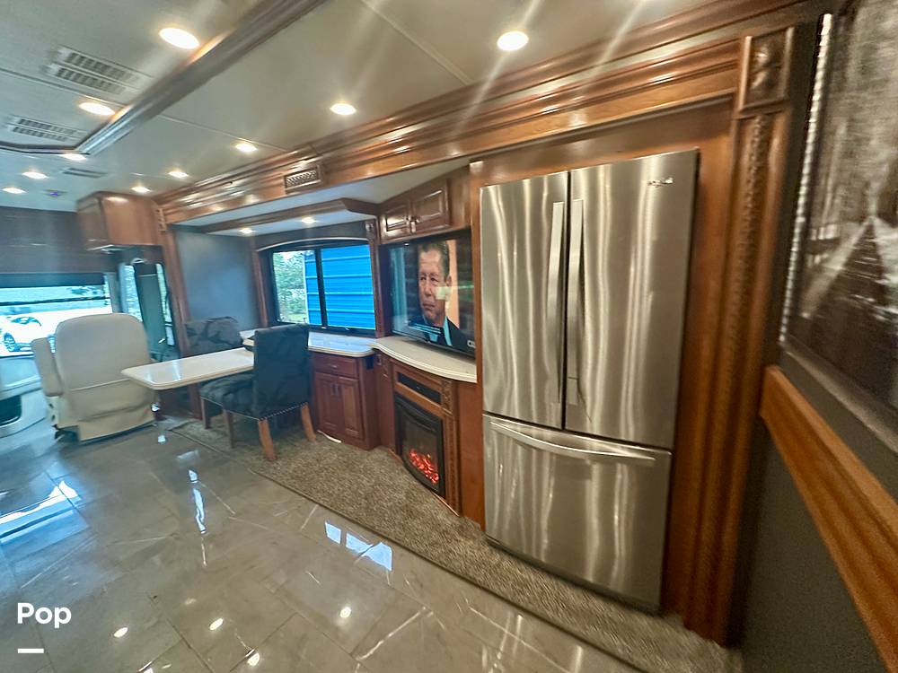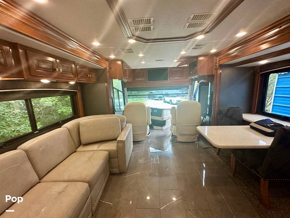 Step inside to find a beautifully appointed living space featuring high-end finishes and modern amenities. The open floor plan includes a fully equipped kitchen with top-of-the-line appliances, ample storage, and a cozy dining area. The plush seating in the living area invites you to relax and unwind, while the entertainment system ensures you stay connected and entertained on the road. The master suite offers a private retreat with a luxurious queen-sized bed, abundant storage, and an en-suite bathroom, providing all the comforts of home.
