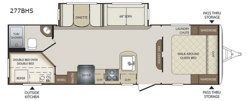 The Keystone Bullet 277BHS is equipped with a single slide-out, ingeniously expanding the living area to provide a spacious and inviting environment. This model is thoughtfully designed to accommodate up to 10 sleepers, making it an ideal choice for large families or groups seeking adventure without compromising on comfort. The intelligently arranged interior features a master bedroom, double bunk beds, and convertible sleeping areas, ensuring everyone has a cozy place to rest after a day of exploration.