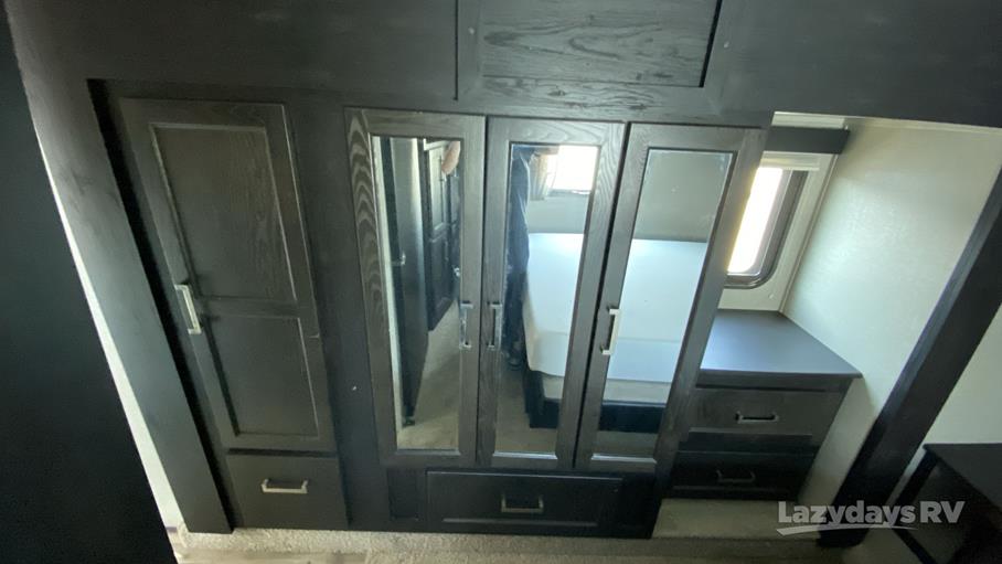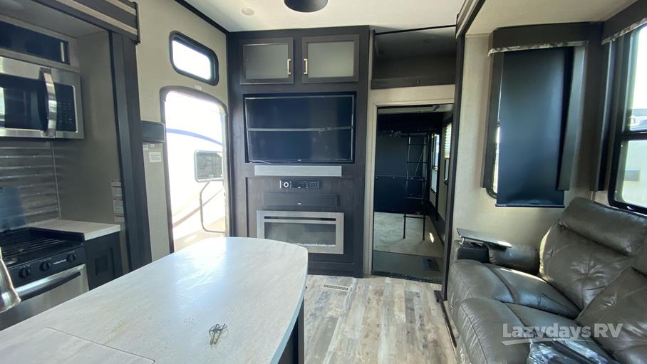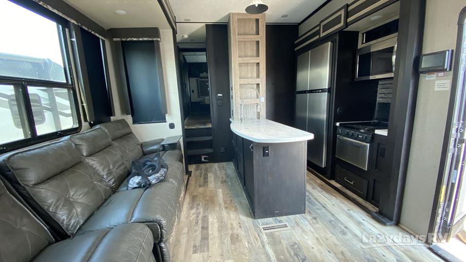 Measuring an impressive 34 feet in length, the Fuzion 384 provides ample room for the whole family, comfortably sleeping up to nine people. Whether you're planning a weekend escape or an extended road trip, this RV ensures everyone has their own cozy corner to relax and unwind. The thoughtfully designed interior features modern amenities and stylish finishes, making it a pleasure to spend time indoors. From the fully equipped kitchen to the spacious living area, every detail is crafted to enhance your travel experience.