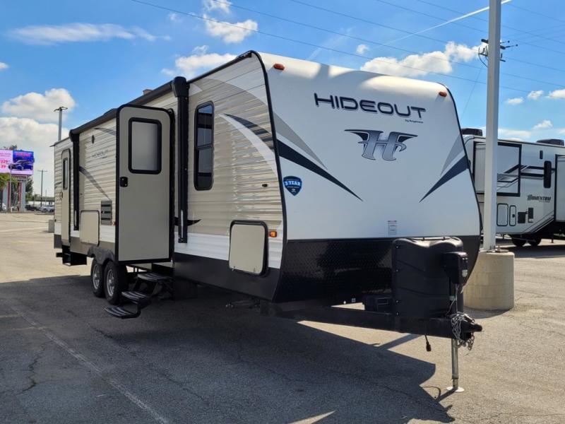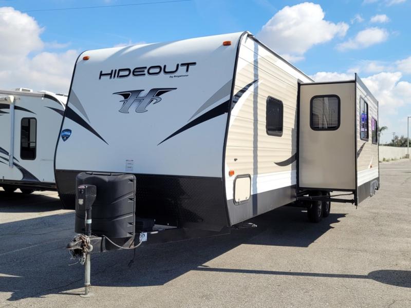 Discover the ultimate adventure companion with the 2018 Keystone RV Hideout 28BHSWE Travel Trailer. This exceptional RV is designed to elevate your travel experiences, offering a perfect blend of comfort, convenience, and style. With a spacious slide-out, this travel trailer expands to provide ample living space for you and your loved ones, ensuring that every journey is as comfortable as it is memorable.