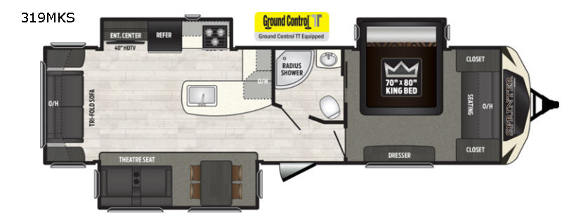 Inside, the Sprinter 319MKS comfortably sleeps four, making it perfect for family getaways or trips with friends. The intelligently designed layout features a cozy master bedroom and a versatile living area that transforms into additional sleeping quarters. The well-appointed kitchen is equipped with modern appliances, allowing you to prepare delicious meals on the go. Whether you're enjoying a quiet evening indoors or entertaining guests, the spacious living area provides a welcoming atmosphere for all.
