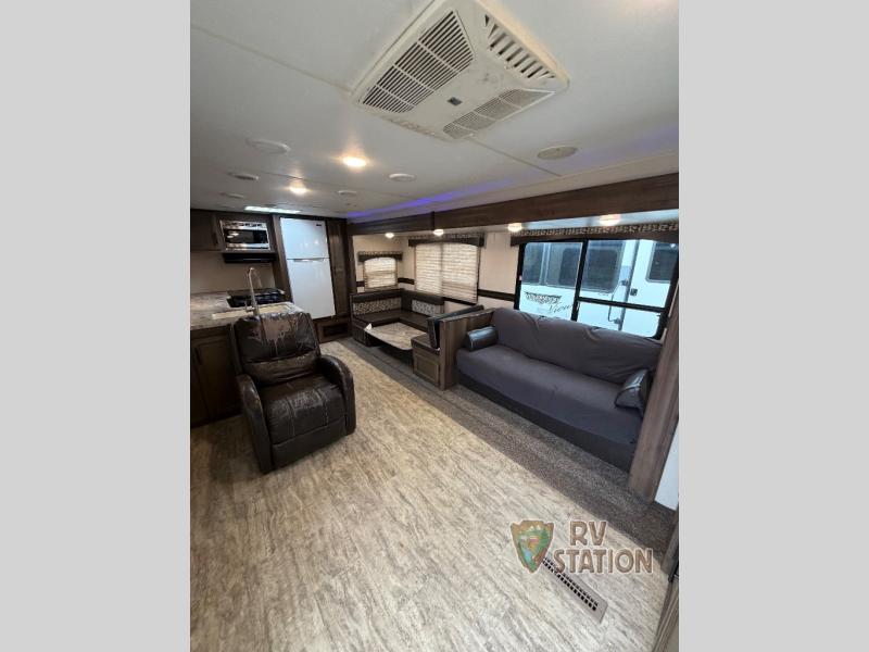 This travel trailer is designed to accommodate up to six people, making it perfect for family vacations or group outings. The interior is crafted with attention to detail, offering a cozy and inviting atmosphere. The sleeping arrangements are versatile, ensuring everyone has a comfortable place to rest after a day of exploration. The kitchen is equipped with modern amenities, allowing you to prepare meals with ease, while the living area provides a welcoming space to unwind and enjoy each other's company.