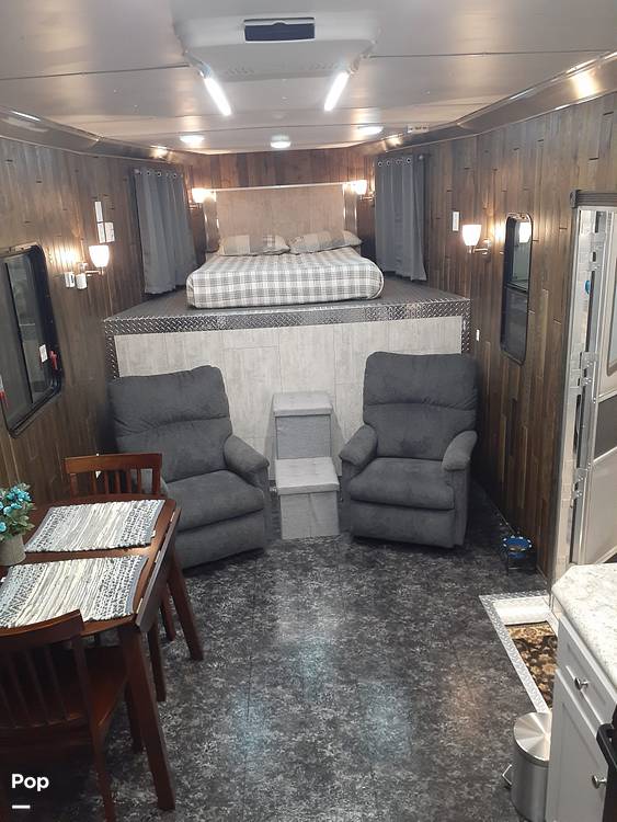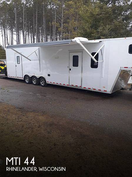 Inside, the MTI 44 Fifth Wheel is thoughtfully designed to accommodate up to four guests comfortably. The interior boasts a sophisticated layout with high-quality finishes and modern amenities. The living area is equipped with plush seating and a state-of-the-art entertainment system, creating a cozy environment for relaxation. The fully-equipped kitchen features top-of-the-line appliances, ample storage, and a spacious dining area, making meal preparation and dining a pleasure. The sleeping quarters are equally impressive, offering a restful haven with comfortable bedding and ample storage space.