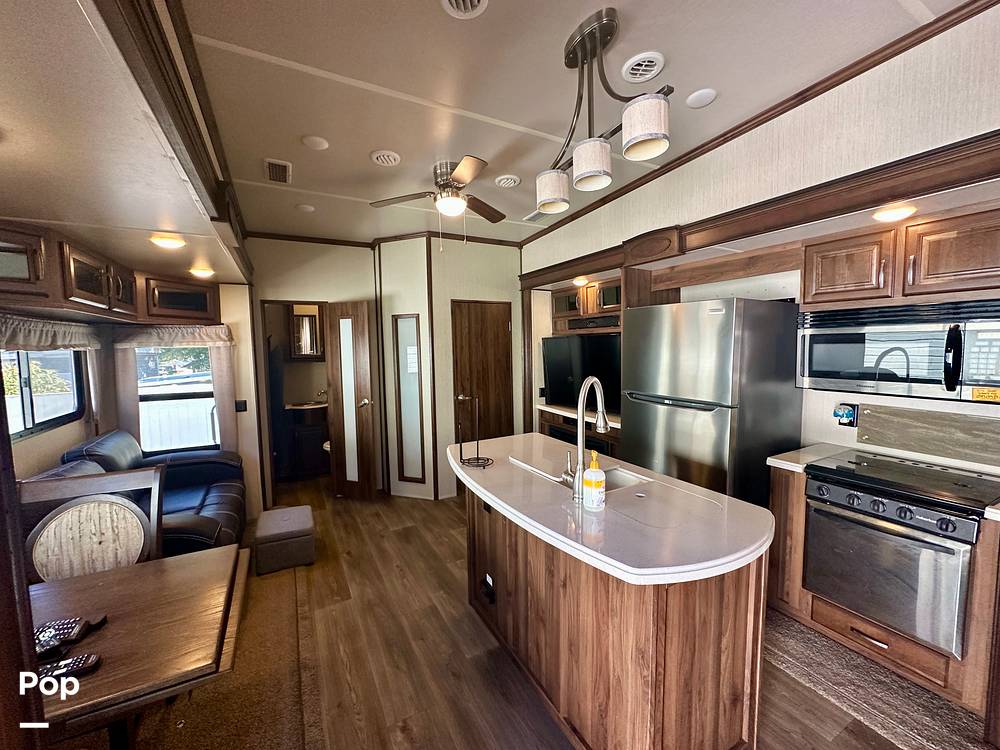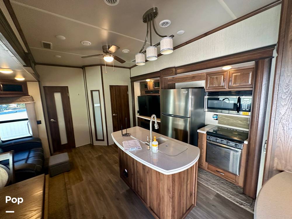 Inside, the Palomino Columbus 374BHC is thoughtfully designed to accommodate up to five guests comfortably. The interior features a well-appointed living area, complete with plush seating and elegant finishes, creating a warm and inviting atmosphere. The fully equipped kitchen boasts modern appliances and generous counter space, making meal preparation a breeze. The sleeping quarters are equally impressive, offering a restful sanctuary with cozy bedding and ample storage solutions to keep your belongings organized and accessible.