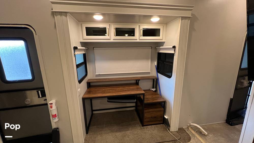 Step inside and be greeted by a beautifully appointed interior that exudes elegance and functionality. The thoughtfully designed floor plan features a front kitchen layout, providing a unique and efficient cooking space equipped with modern appliances and ample storage. The living area is a haven of relaxation, boasting plush seating and a state-of-the-art entertainment system, making it the perfect spot to unwind after a day of exploration. The master suite offers a tranquil escape, complete with a luxurious queen-sized bed and generous wardrobe space, ensuring restful nights and organized living.