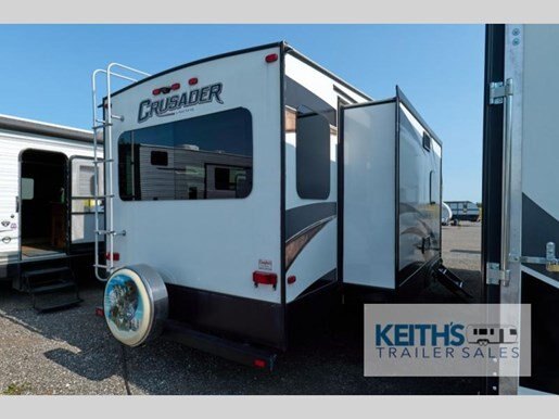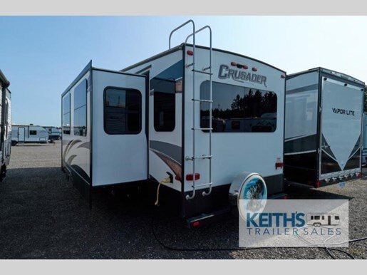 The master bedroom offers a tranquil retreat with a queen-sized bed and ample storage space, while the bathroom features a large shower and all the amenities you need for convenience on the road. Additional highlights include a robust air conditioning system, a large awning for outdoor relaxation, and plenty of storage compartments to keep your gear organized. Whether you're a seasoned traveler or new to RV life, the 2018 Prime Time RV Crusader 295RST promises a journey filled with comfort and adventure. Don't miss the opportunity to make this exceptional RV your home away from home.