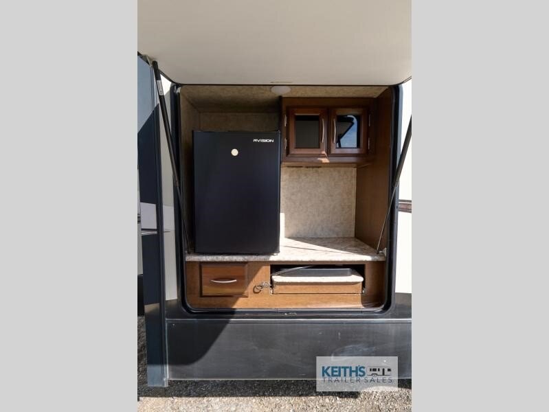 Inside, you'll find a cozy living area with a comfy sofa and a dinette that’s perfect for meals or game nights. The kitchen is fully equipped with a fridge, microwave, and a three-burner stove, so you can whip up your favorite meals on the go. The bedroom features a queen-sized bed, offering a restful retreat after a day of adventure. And don't worry about storage—there's plenty of it throughout the RV, so you can bring all your essentials and then some.