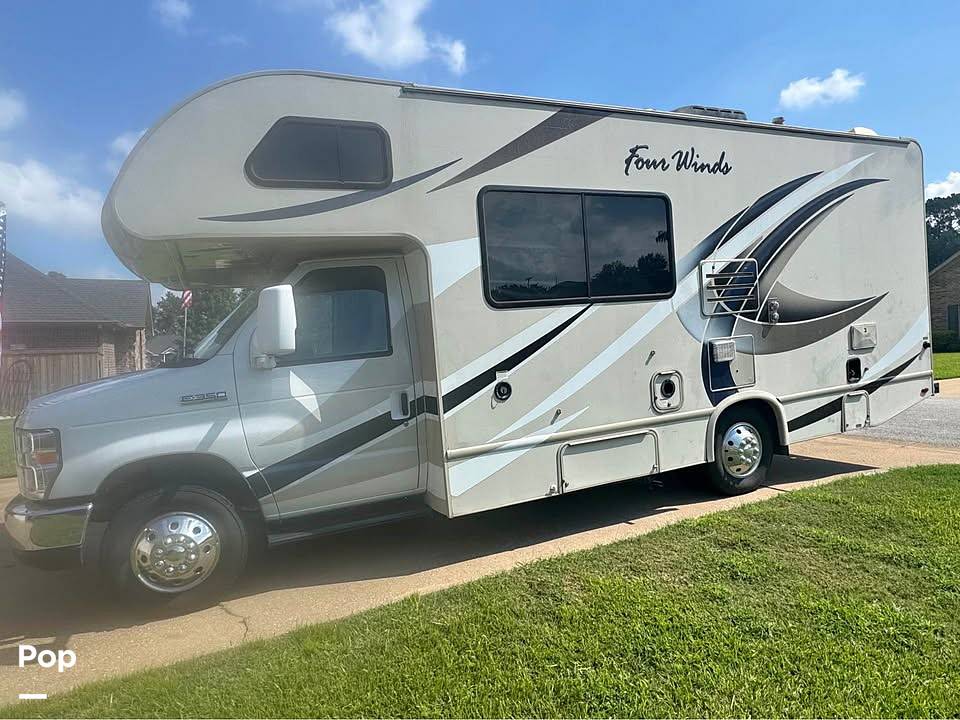 Step inside and be greeted by a thoughtfully designed interior that maximizes space and functionality. The Four Winds 23U features a cozy sleeping arrangement for six, including a comfortable queen-sized bed, a convertible dinette, and an over-cab bunk. The fully equipped kitchen boasts a refrigerator, microwave, and three-burner gas cooktop, allowing you to prepare delicious meals on the go. The bathroom offers a shower, toilet, and sink, providing all the comforts of home wherever you roam.