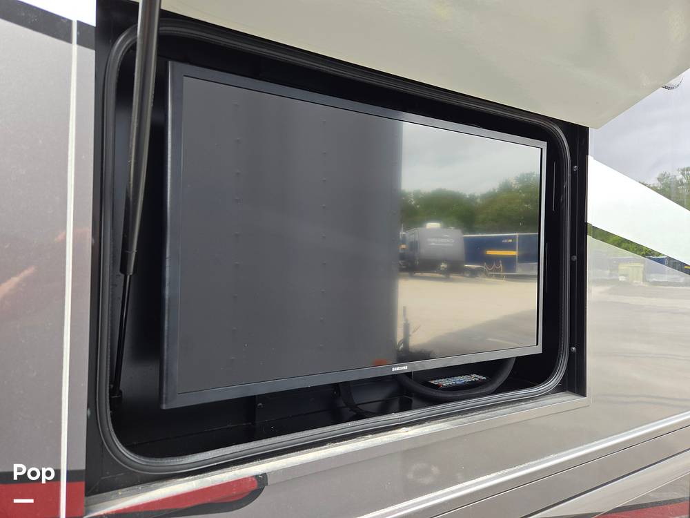 Step inside to find a well-designed interior that maximizes space and functionality. The Forza 38W features a fully equipped kitchen with a refrigerator, microwave, and stove, allowing you to prepare meals with ease. The living area is designed for relaxation, with comfortable seating and a large TV for entertainment. The sleeping arrangements include a master bedroom with a queen-sized bed, bunk beds, and convertible sofas, ensuring everyone has a cozy place to rest.