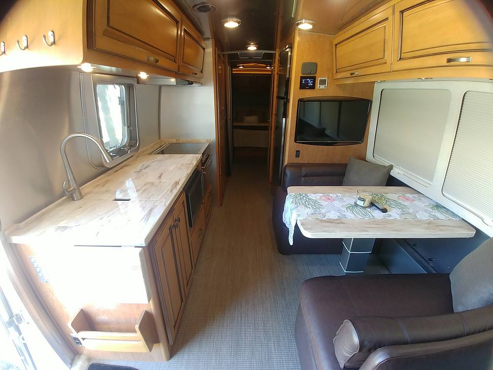 Inside, the Airstream Classic 30RB is thoughtfully configured to sleep up to five people comfortably, making it ideal for families or small groups. The interior is adorned with high-quality materials and finishes, creating an inviting atmosphere that exudes elegance and sophistication. The well-appointed kitchen features top-of-the-line appliances, ensuring that meal preparation is both convenient and enjoyable. The spacious living area is designed for comfort, with plush seating and ample storage, allowing you to unwind in style after a day of exploration.