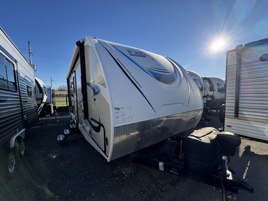 Step inside, and you'll be greeted by a spacious interior, thanks to the single slide-out that expands your living area. The Freedom Express comfortably sleeps up to four people, making it perfect for small families or couples looking to escape the hustle and bustle of everyday life. The well-appointed kitchen comes equipped with all the essentials you need to whip up delicious meals on the go, while the cozy dining area is perfect for enjoying them together. After a day of adventure, relax in the inviting living space or retreat to the comfortable sleeping quarters for a restful night's sleep.