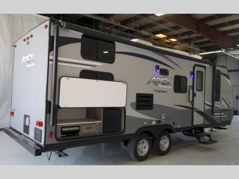 Externally, the Apex 245 BHS boasts a sleek, aerodynamic profile that enhances towing performance. The durable fiberglass exterior is built to withstand the elements, ensuring longevity and peace of mind. Additional features include a power awning for outdoor enjoyment, ample storage compartments for all your travel essentials, and an efficient heating and cooling system to keep you comfortable in any climate. Whether you're embarking on a weekend getaway or an extended road trip, the 2019 Coachmen RV Apex 245 BHS Hybrid is your reliable companion for creating unforgettable memories.