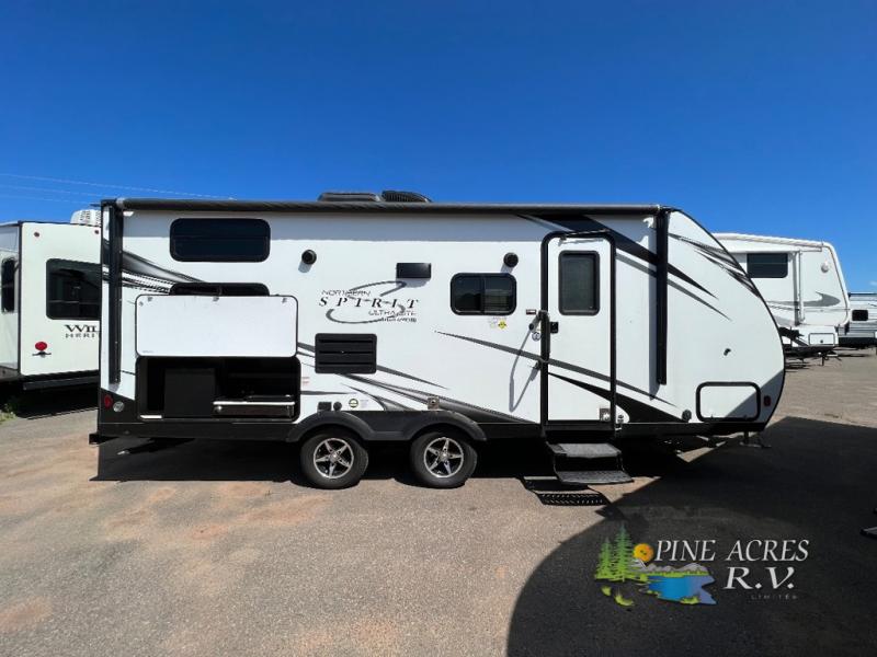 The Northern Spirit Ultra Lite is all about making your travels hassle-free and enjoyable. It features a fully equipped kitchen with a refrigerator, stove, and microwave, allowing you to whip up your favorite meals on the go. The bathroom is complete with a shower and toilet, providing the comforts of home wherever you roam. Plus, with its durable construction and sleek design, this travel trailer is not just practical but also a head-turner on the road. Don’t miss out on the opportunity to own this fantastic RV and start creating unforgettable memories today!