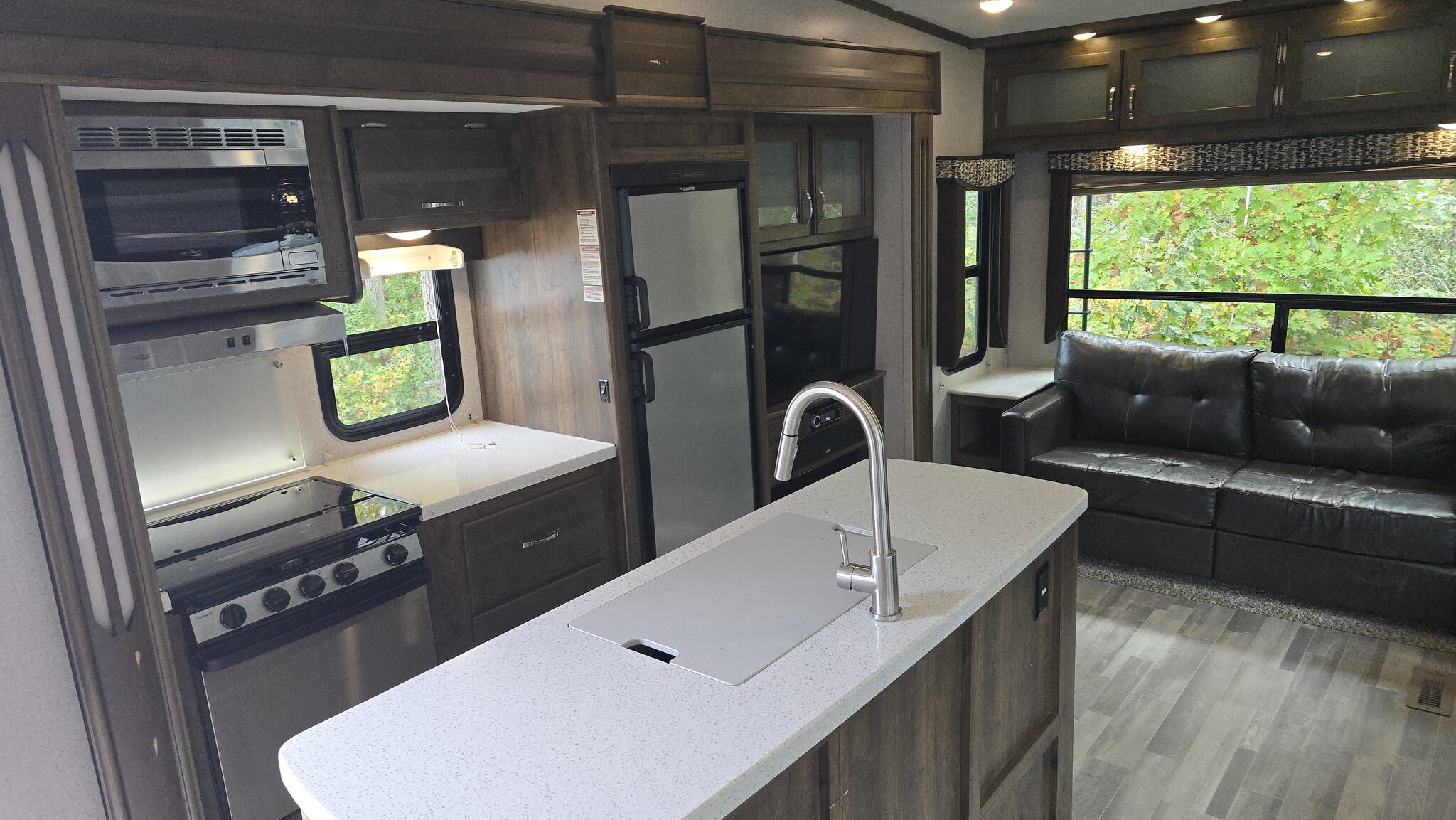 Weighing in at approximately 4,794 kilograms, this Fifth Wheel is designed for easy towing, making it an ideal choice for both seasoned travelers and RV newcomers. The Astoria's thoughtful design includes a well-appointed kitchen, complete with modern appliances, allowing you to prepare your favorite meals on the road. The cozy living area is perfect for unwinding after a day of adventure, featuring plush seating and a state-of-the-art entertainment system.
