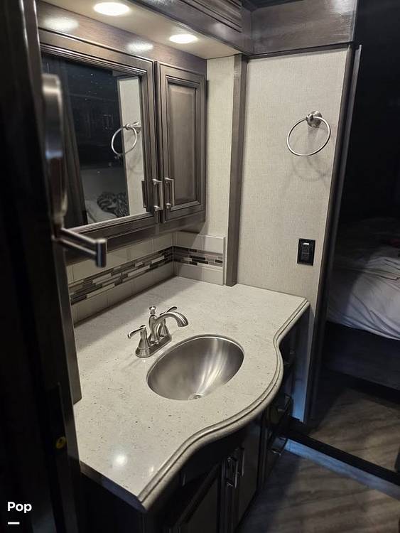 Step inside to discover a world of elegance and convenience. The interior boasts high-quality finishes and modern amenities, ensuring that every moment spent inside is as enjoyable as the destinations you explore. The well-appointed living area features plush seating and a state-of-the-art entertainment system, creating a perfect space for relaxation. The kitchen is equipped with top-of-the-line appliances, allowing you to prepare gourmet meals with ease. The bedroom offers a serene retreat with ample storage and a luxurious sleeping arrangement, ensuring restful nights on the road.