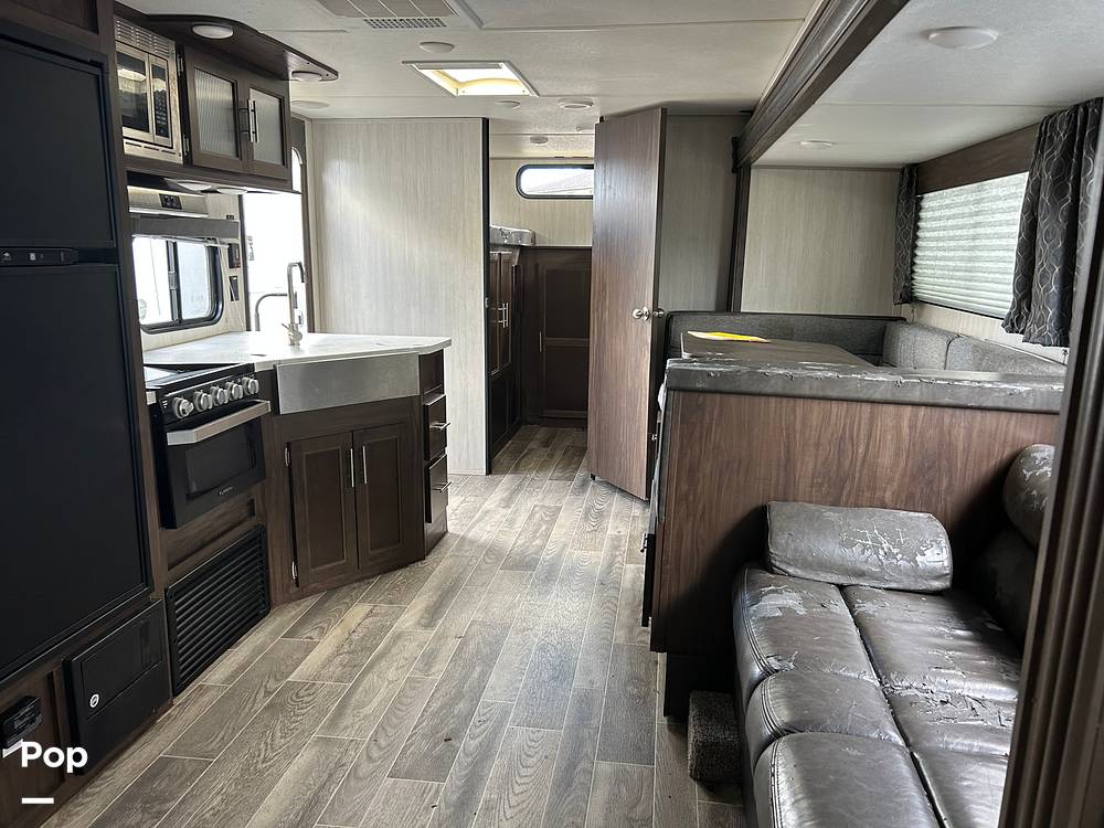 Step inside to find a well-appointed interior that combines comfort and functionality. The Grey Wolf 29TE features a versatile floor plan with a cozy master bedroom, double bunk beds, and convertible sleeping areas in the living space. The fully equipped kitchen includes a refrigerator, microwave, and stove, allowing you to prepare meals with ease. The dinette and sofa provide comfortable seating for dining and relaxation, while the entertainment center ensures everyone stays entertained on the road.