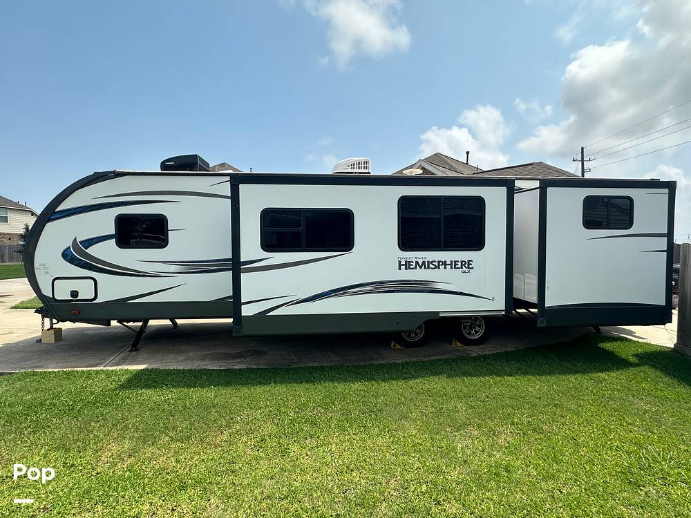 Discover the perfect blend of comfort and adventure with the 2019 Forest River Hemisphere 300BH Travel Trailer. This spacious RV is designed to accommodate up to 10 people, making it ideal for family trips or group getaways. With a length of 31 feet, this travel trailer offers ample space without compromising on maneuverability, ensuring you can explore a variety of destinations with ease.