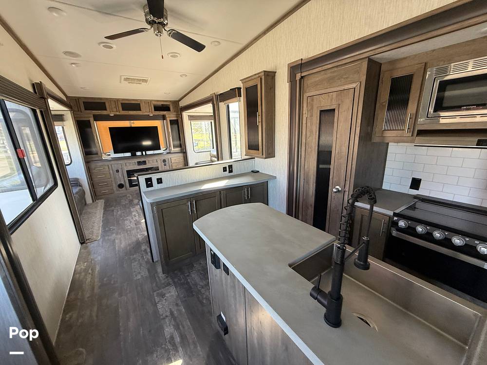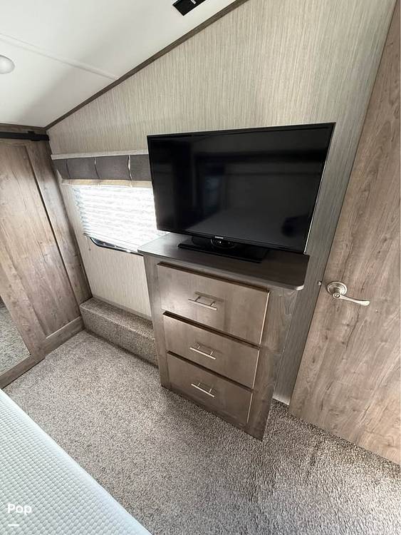 Step inside and be greeted by a spacious, thoughtfully designed interior that promises to be your home away from home. The Sabre 38RDP features a well-appointed kitchen equipped with modern appliances, ensuring you can prepare meals with ease. The living area is a haven of relaxation, boasting plush seating and a cozy atmosphere, perfect for unwinding after a day of exploration. The master bedroom offers a private retreat with a comfortable bed, while additional sleeping areas ensure everyone has their own space to rest.