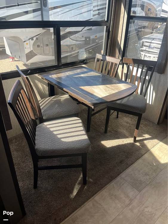 Measuring an impressive 34 feet in length, the Momentum 376TH is designed to provide ample space without compromising on maneuverability. Inside, you'll find a well-appointed living area featuring plush seating and a state-of-the-art entertainment system, perfect for relaxing evenings. The fully equipped kitchen boasts modern appliances and generous counter space, making meal preparation a breeze. The master bedroom offers a private retreat with a comfortable queen-sized bed, while additional sleeping arrangements include a convertible sofa and a loft bed.
