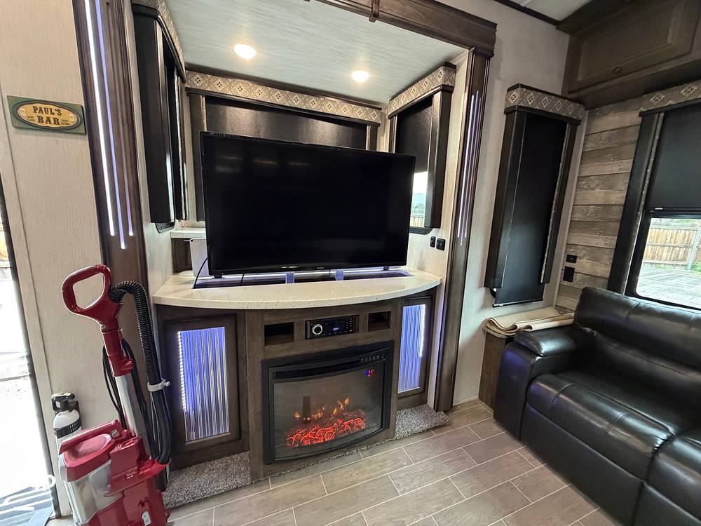 Inside, the Heartland Bighorn 32CK comfortably sleeps up to four people, making it perfect for families or couples seeking a cozy escape. The interior boasts a well-appointed living area with plush seating and a modern entertainment system, ensuring relaxation after a day of exploration. The kitchen is equipped with high-quality appliances and generous counter space, allowing you to prepare meals with ease. The elegant dining area is perfect for enjoying meals together or planning your next adventure.