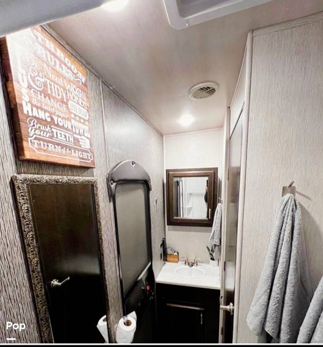 Step inside to find a thoughtfully designed interior that maximizes both functionality and style. The ElkRidge 37 BHS features a well-equipped kitchen with modern appliances, allowing you to prepare meals with ease. The cozy living area is perfect for relaxing after a day of exploration, complete with comfortable seating and entertainment options. The master bedroom offers a private retreat with a plush bed, while additional sleeping areas ensure everyone has a comfortable place to rest.