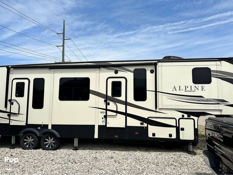 Outside, the Keystone Alpine 3800FK continues to impress with its durable construction and stylish exterior. Whether you're parked at a campsite or exploring off the beaten path, this fifth wheel is built to handle it all. With its generous storage compartments, you can bring along all your gear and essentials for an unforgettable journey. Don't miss the chance to own this exceptional RV that promises comfort, convenience, and countless memories on the road. Embrace the freedom of travel with the Keystone Alpine 3800FK and start your next adventure today!