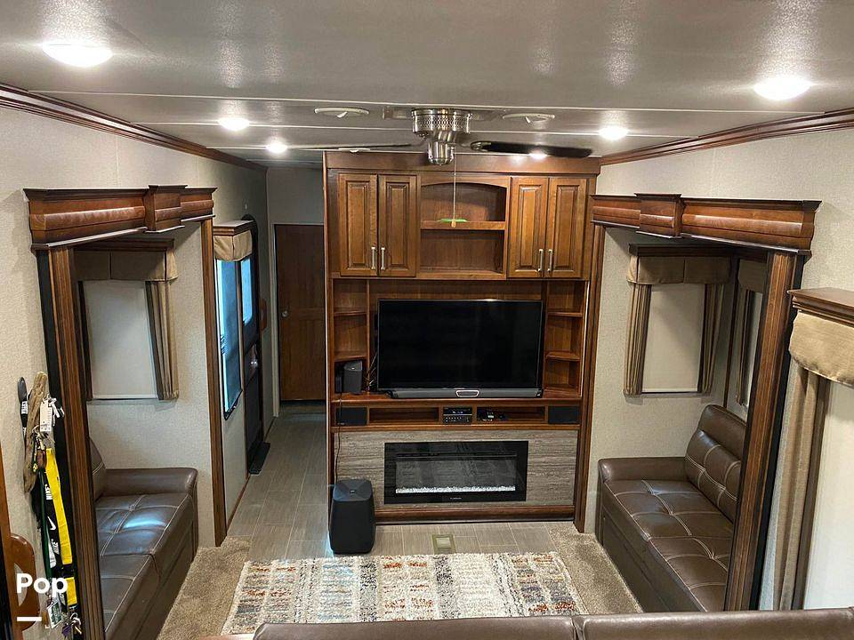Step inside and be greeted by a beautifully designed interior that combines elegance with practicality. The front kitchen layout is a chef's dream, featuring modern appliances and plenty of counter space for meal preparation. The living area is equally impressive, boasting plush seating and a cozy atmosphere for relaxing after a day of exploration. With its thoughtful design, this RV ensures that everyone has their own space to unwind and enjoy.