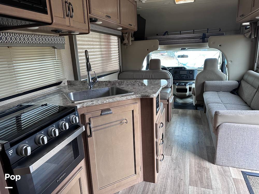 Discover the open road in style and comfort with the 2019 Thor Motor Coach Freedom Elite 26E Class C RV! Perfect for families or groups of friends, this versatile motorhome is designed to sleep up to eight people, ensuring everyone has a cozy spot to rest after a day of adventure. With a length of 23 feet, this RV is compact enough for easy maneuverability yet spacious enough to provide all the comforts of home.