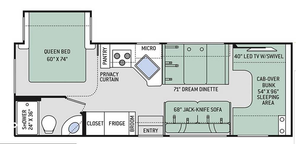 Step inside to find a well-appointed interior featuring a fully equipped kitchen with a refrigerator, microwave, and three-burner stove, making meal prep a breeze. The dinette and sofa provide ample seating for dining or relaxing, and both convert into sleeping areas. The private bedroom at the rear offers a comfortable double bed, while the overhead bunk and convertible spaces ensure everyone has a place to sleep. The bathroom is thoughtfully designed with a shower, sink, and toilet, providing all the essentials for a refreshing start to your day.