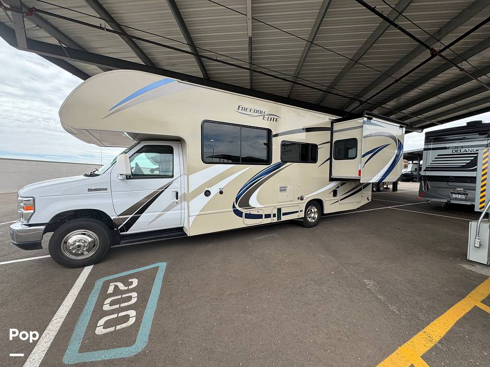 This motorhome is equipped with a host of features designed to enhance your travel experience. The sleeping arrangements are versatile and comfortable, ensuring a restful night's sleep for everyone on board. The kitchen is fully equipped with essential appliances, allowing you to prepare meals with ease. Additionally, the RV includes ample storage space, ensuring that all your travel essentials are within reach. Whether you're embarking on a cross-country journey or a weekend getaway, the 2019 Thor Motor Coach Freedom Elite 26HE Class C RV is your ideal companion, offering reliability, comfort, and style in every mile.